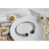 Bracelet en cuivre avec aimants, en forme de jonc avec perles d’œil de tigre finition argentée Omsaé