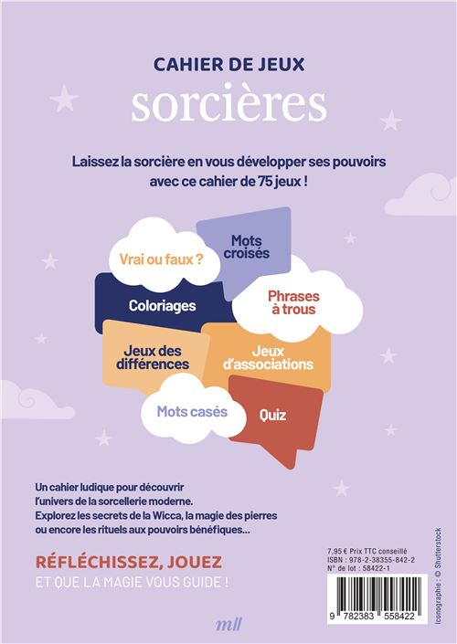 Pensé comme un moment de détente et de découverte, Cahier de jeux sorcières mêle réflexion, observation et imagination. Il permet de se reconnecter à son enfant intérieur, de développer la curiosité et de savourer la magie du jeu, seul ou à partager.