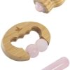 Coffret composé d’un masseur roll on en bambou et bille en quartz rose, d’un masseur en bambou multi-zone avec deux perles en quartz rose et d’un bâton de massage arrondi en quartz rose.