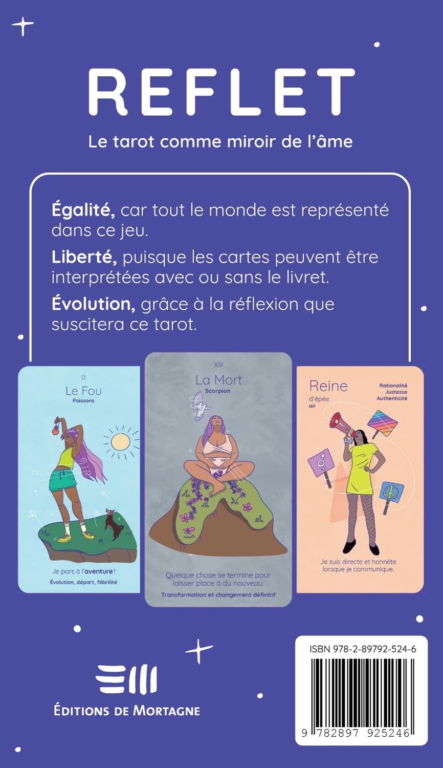 Les points forts de ce coffret : il contient 78 cartes + un livret de référence (les cartes peuvent être interprétées sans le livret) ; il est accessible : pas besoin de connaissances sur le tarot pour y jouer ; les illustrations sont inclusives, axées sur la diversité corporelle, colorées et très actuelles. C’est un outil de guidance et de croissance personnelle. Les tirages sont prédictifs.