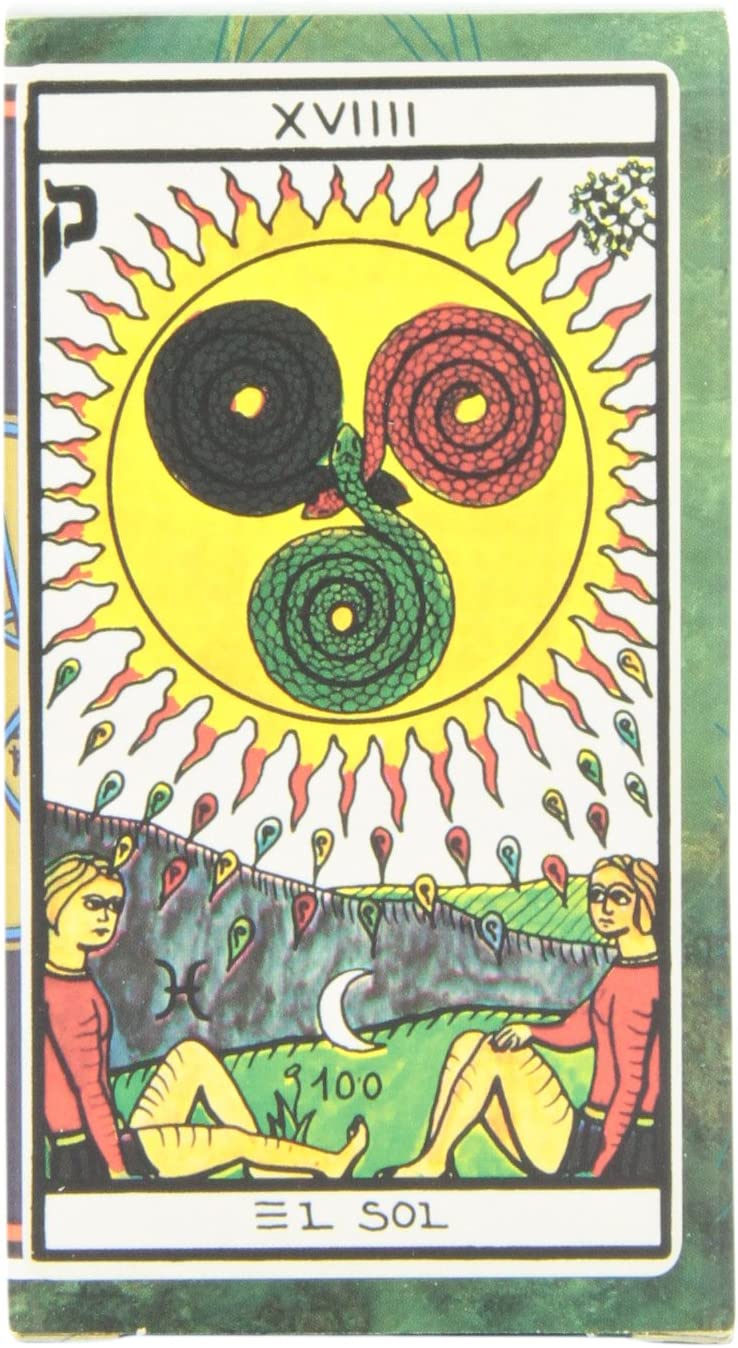Luis Pena Longa a créé des cartes très lumineuses dans des couleurs primaires et avec un dos de carte noir. Les arcanes majeures sont numérotés en chiffres roman et ont des noms espagnols. Des symboles astrologiques ainsi que des lettres en hébreux ont été apposés sur les arcanes majeurs.